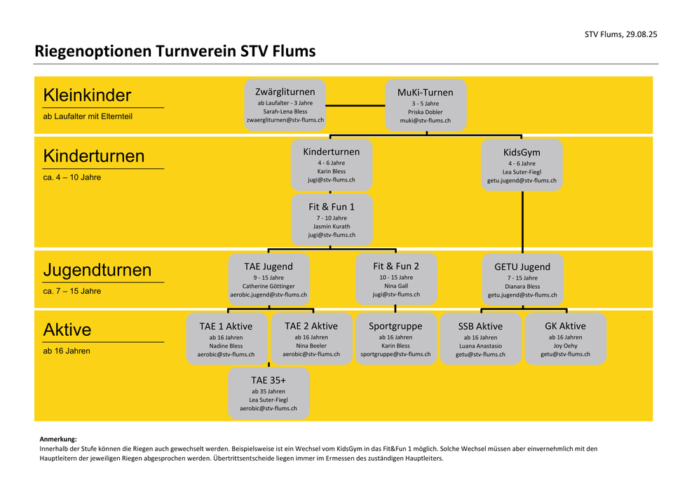 Hier kannst du mehr über die einzelnen Riegen, die Trainingszeiten und die Kontaktdaten erfahren!